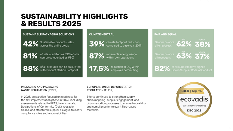 Olemme käyttäneet paljon aikaa ja resursseja valmistautuaksemme tuleviin sääntelyvaatimuksiin, erityisesti PPWR:n ja EUDR:n osalta – vaatimuksiin, jotka ovat keskeisiä sekä Boxonille että asiakkaillemme.